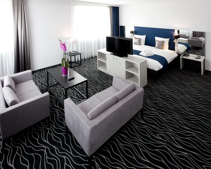 Offrez-vous une expérience hôtelière haut de gamme dans notre Suite de 60 m² à l’hôtel Van der Valk Mons. Pensée pour les voyageurs en quête de confort et d’élégance, cette chambre spacieuse avec bain à remous combine design moderne et prestations luxueuses pour un séjour inoubliable.