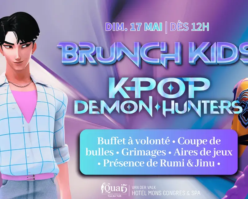 Le dimanche 17 mai dès 12h, nous invitons les petits chasseurs de démons… et de gourmandises… à vivre un brunch pas comme les autres ! Dans une ambiance inspirée de l’univers K-pop et des héros du film, les enfants pourront plonger dans une aventure festive où musique, danse et fun sont au rendez-vous.