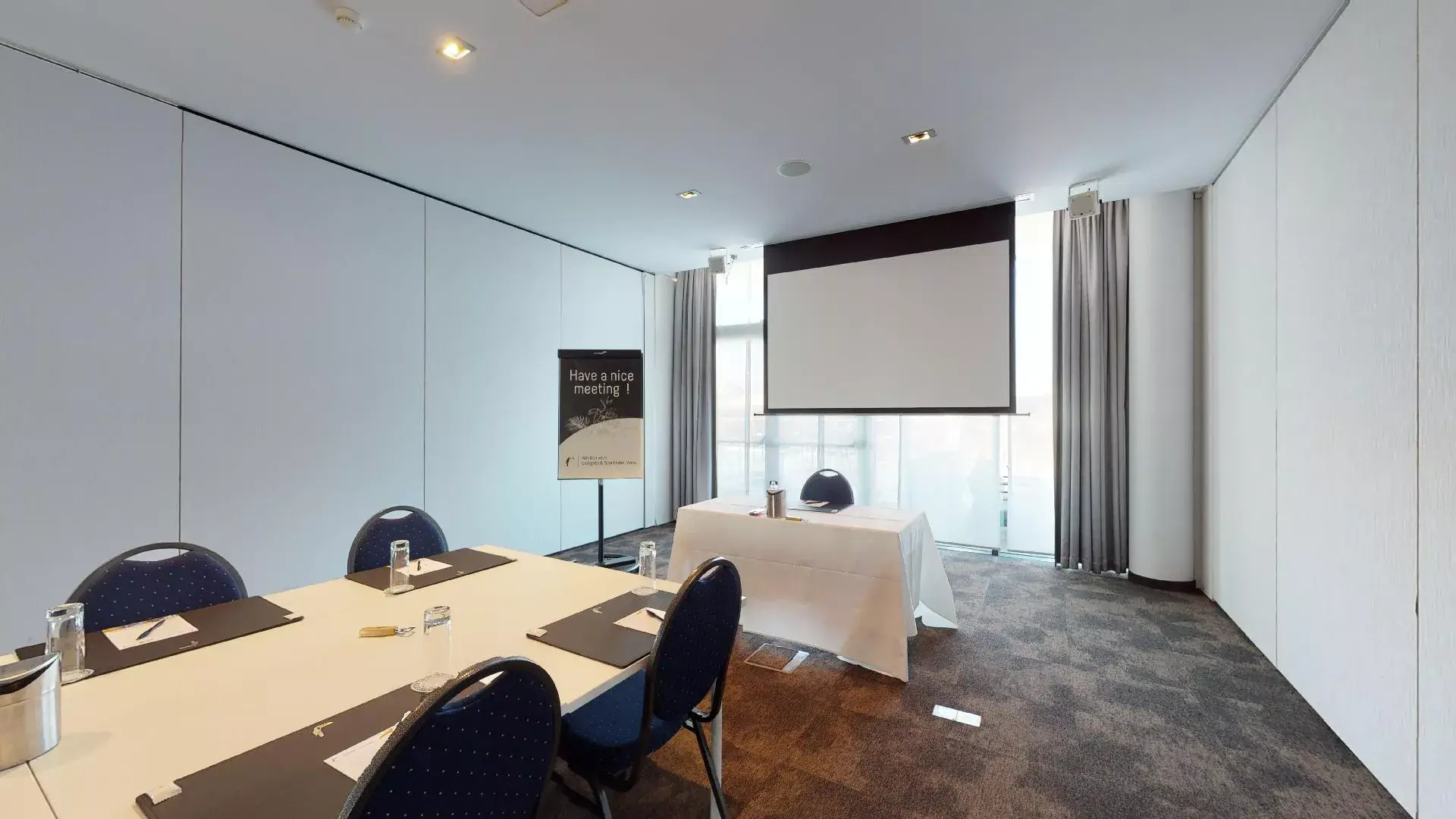 Alle onze zalen beschikken over audiovisuele apparatuur en geluidssystemen. Alles wat u nodig heeft voor een vergadering, een zakelijk evenement of een geslaagd seminarie is tot uw beschikking.