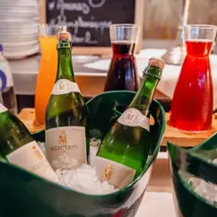 Boissons : Cafés, thés, jus de fruits frais pressés et une touche de bulles pour les grandes occasions.
