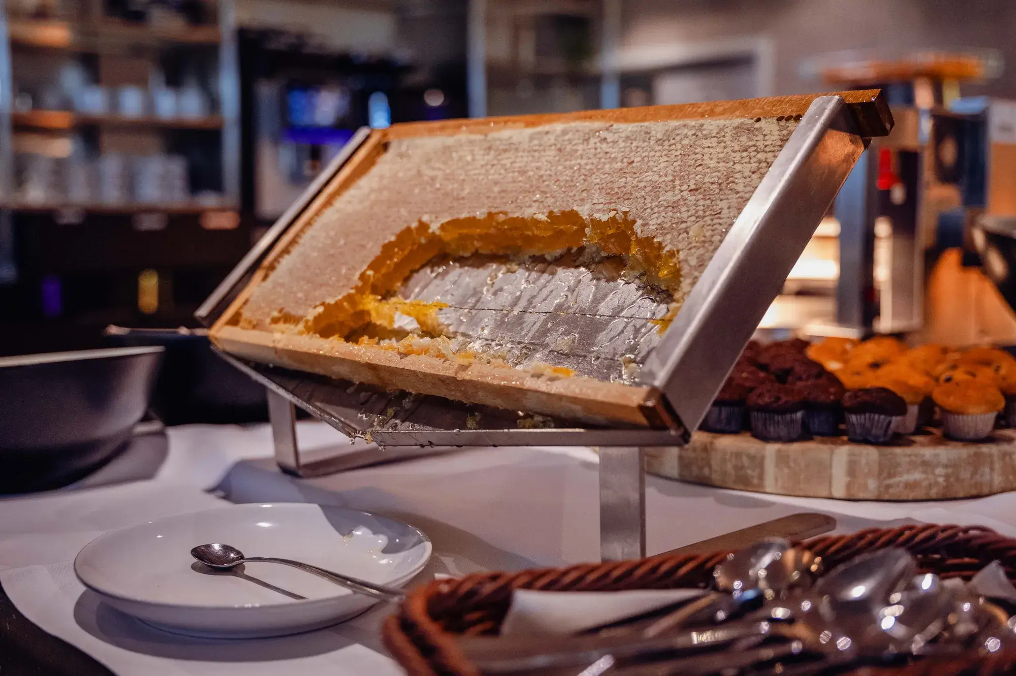 Gourmandise : Machine à pancakes et pâtisseries (donuts, muffins).
